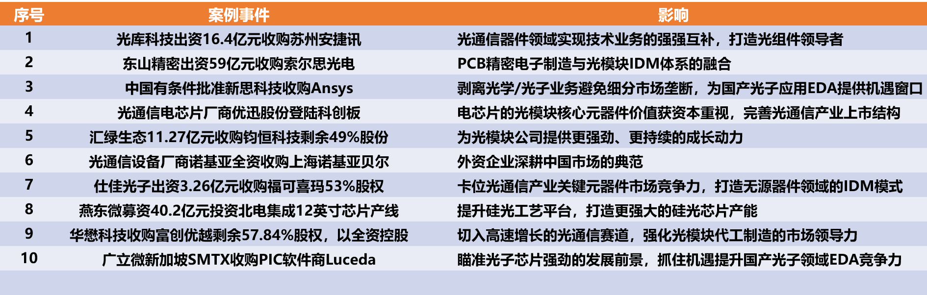 2025中國光通信最具影響力資本投資并購案例Top 10