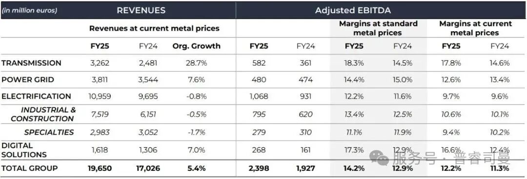 電網(wǎng)業(yè)務(wù)實(shí)現(xiàn)強(qiáng)勁增長(zhǎng)(由北美及歐洲驅(qū)動(dòng)),并取得穩(wěn)健盈利能力,盡管第四季度架空輸電線路業(yè)務(wù)的金屬溢價(jià)飆升帶來暫時(shí)性影響。