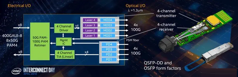 圖1:400G硅光光模塊架構(gòu)(來(lái)源:Intel)