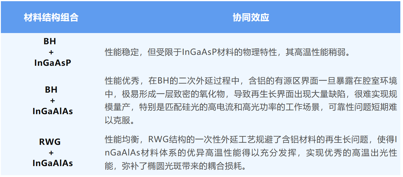 因此,目前的市場(chǎng)上兩種可行的組合是BH+InGaAsP和RWG+InGaAIAs。