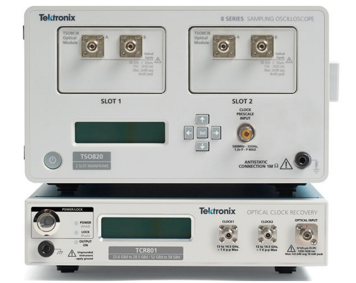 同時(shí)配套登場的還有泰克CDR時(shí)鐘恢復(fù)模塊TCR801,支持26GBd和53GBd時(shí)鐘恢復(fù),只需一根同軸電纜同步時(shí)鐘,快速與其他采樣示波器兼容使用。