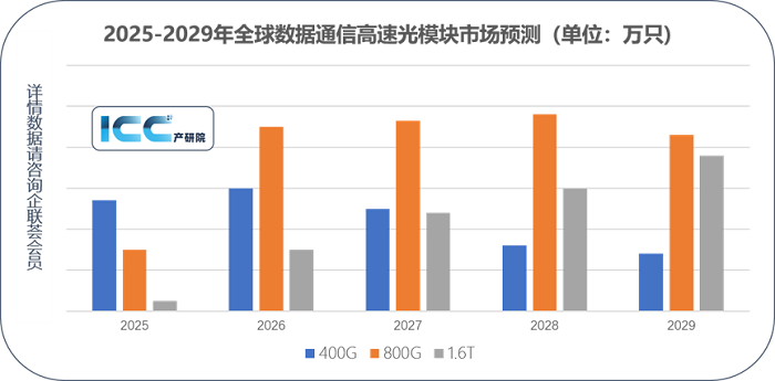 目前,800G是市場需求的主流產(chǎn)品。2025年市場需求量約為2000萬只,是2024年的兩倍。預(yù)計2026年需求量有望再度翻倍,并在2027年保持高位。1.6T光模塊在2025年開啟規(guī)模商用起點,預(yù)計2026年需求量將出現(xiàn)顯著增長,后續(xù)保持高增長態(tài)勢。