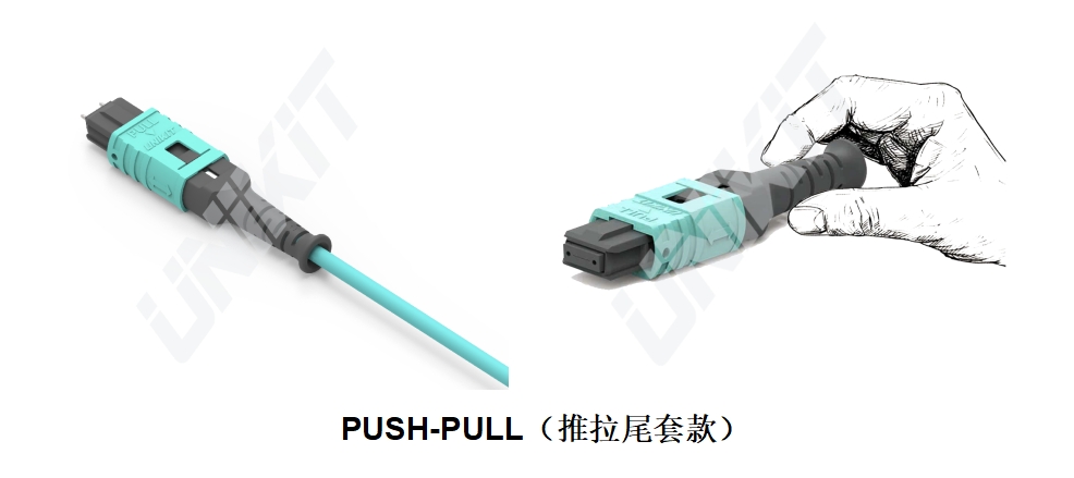 1、推拉尾套式MPO連接器:標(biāo)準(zhǔn)MPO尺寸實(shí)現(xiàn)推拉尾套裝拆功能,更適應(yīng)高密度場景。