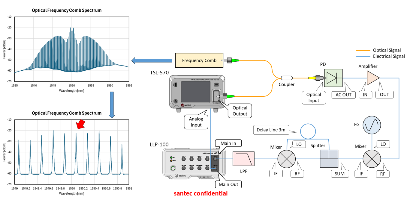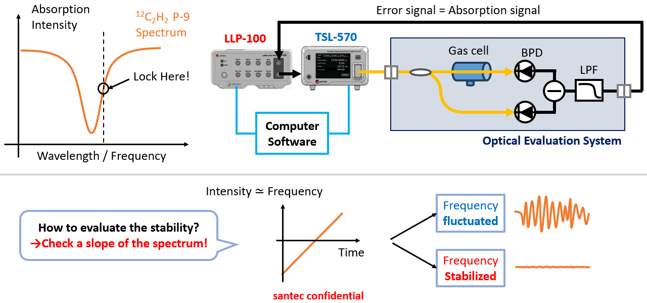 針對(duì)上述技術(shù)挑戰(zhàn),Santec 推出了全新激光鎖頻控制器 LLP-100(Laser Lock Pro)。該設(shè)備為 TSL 系列可調(diào)諧激光器優(yōu)化設(shè)計(jì),兼容 PDH 鎖定、氣體吸收邊帶鎖定、光頻梳參考鎖定等主流穩(wěn)頻技術(shù)路徑。經(jīng)實(shí)測(cè)驗(yàn)證,其可將激光頻率抖動(dòng)指標(biāo)從大于 1 MHz RMS 優(yōu)化至 40 kHz RMS,實(shí)現(xiàn)頻率穩(wěn)定性 25 倍提升,為前沿領(lǐng)域的精密實(shí)驗(yàn)與應(yīng)用開發(fā)提供可靠支撐。