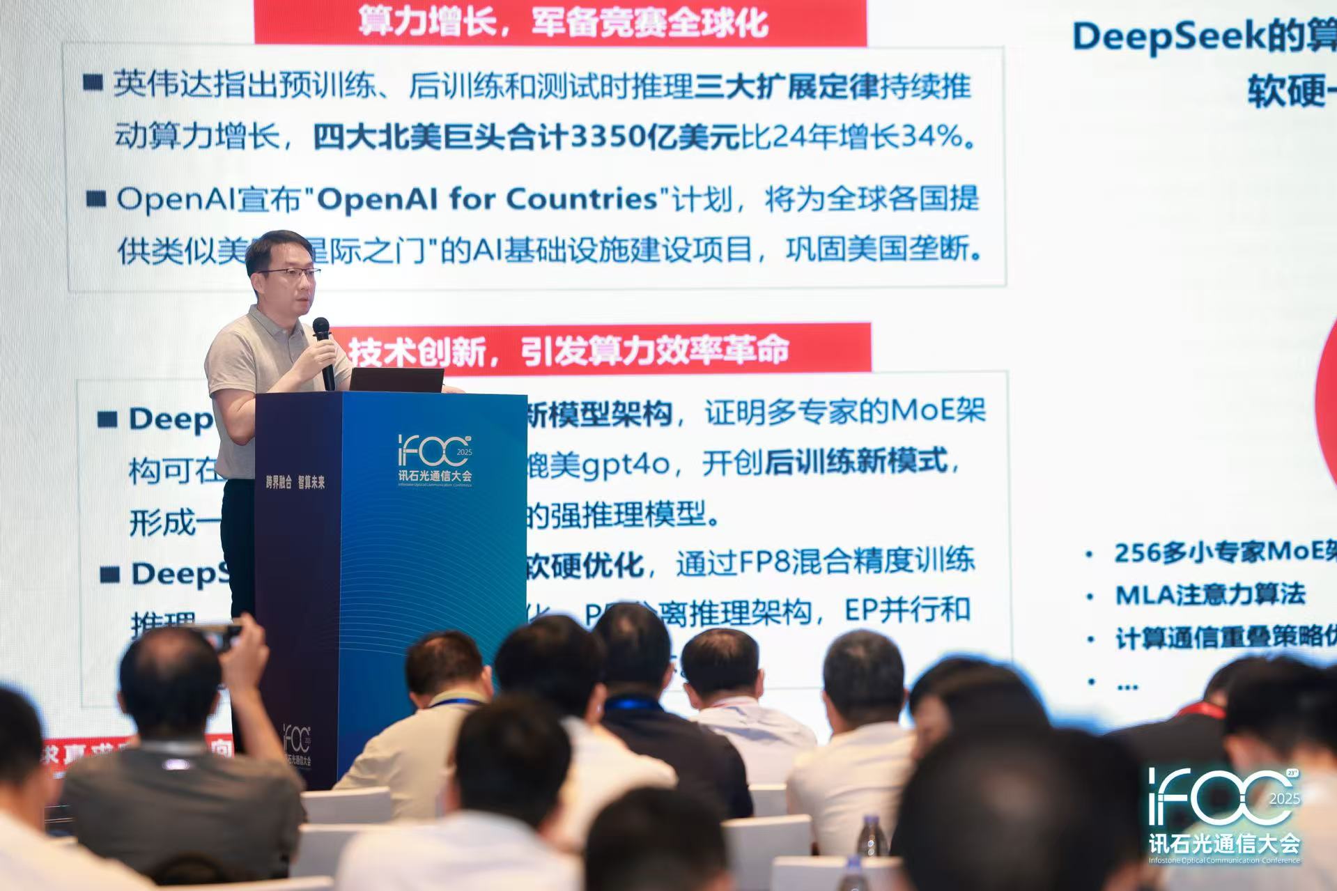 ICC訊 9月8日,IFOC 2025 第23屆訊石光通信大會在深圳國際會展中心洲際酒店正式拉開帷幕。當(dāng)前AI產(chǎn)業(yè)迅猛發(fā)展,為光互連領(lǐng)域開辟了廣闊空間,值此行業(yè)機(jī)遇期,大會專題二論壇《AI算力光互連發(fā)展》精準(zhǔn)聚焦這一核心議題——論壇由長光華芯副總經(jīng)理吳真林主持,特邀中國電信、光迅科技、光安倫等企業(yè)及北京大學(xué)的專家學(xué)者齊聚,圍繞“AI算力光互連發(fā)展”深度分享前沿技術(shù)報(bào)告與行業(yè)洞察,為領(lǐng)域發(fā)展帶來新的思想碰撞。