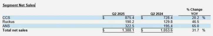 康普此次出售的CCS業(yè)務(wù)是其迄今為止最大的業(yè)務(wù)部門。2024年,CCS部門創(chuàng)造了約28億美元的凈銷售額,其主要驅(qū)動(dòng)力是支持生成式人工智能(GenAI)部署的數(shù)據(jù)中心需求。相比之下,康普的另外兩個(gè)業(yè)務(wù)部門規(guī)模較?。壕W(wǎng)絡(luò)、智能蜂窩與安全解決方案(NICS,后更名為Ruckus)在2024年貢獻(xiàn)了10.5億美元凈銷售額,而接入網(wǎng)絡(luò)解決方案(ANS)業(yè)務(wù)則約為3.6億美元。