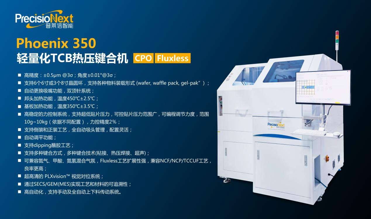 ICC訊 近日,國內(nèi)高端半導(dǎo)體設(shè)備供應(yīng)商普萊信正式推出其最新研發(fā)的Phoenix 350輕量化TCB熱壓鍵合機(jī)。該產(chǎn)品專為解決CPO(共封裝光學(xué))封裝以及WLP(晶圓級封裝)工藝中的核心痛點而設(shè)計,憑借其超高精度、高速度及多功能的工藝能力,為光電封裝領(lǐng)域提供了全新的技術(shù)解決方案。