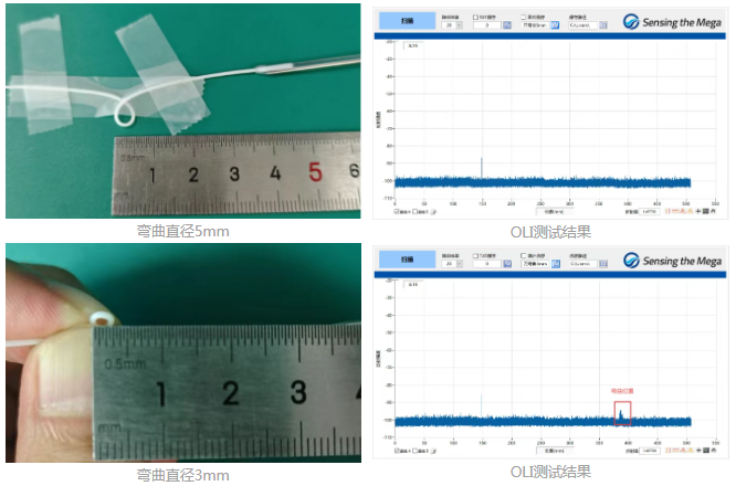 使用背向散射法對(duì)光纖彎曲進(jìn)行測(cè)試及檢查(OTDR技術(shù)、OFDR技術(shù)、白光相干技術(shù))即是利用光纖大曲率彎曲會(huì)對(duì)回波信號(hào)的強(qiáng)度造成影響這一特點(diǎn),對(duì)彎曲進(jìn)行測(cè)試及預(yù)警。