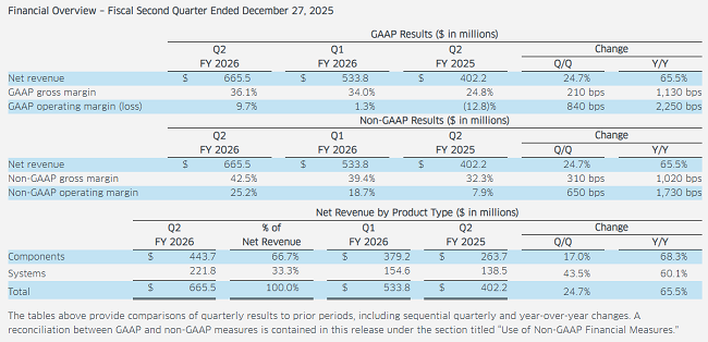 ICC訊 周二, Lumentum Holdings Inc.公布了截至2025年12月27日的2026財(cái)年第二季度財(cái)務(wù)業(yè)績。