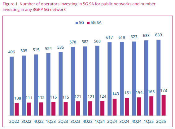 根據(jù)GSA《2025年8月5G SA網(wǎng)絡(luò)部署與采用報(bào)告》,全球70個(gè)國(guó)家的173家運(yùn)營(yíng)商正在投資建設(shè)公共5G SA網(wǎng)絡(luò),較2024年第四季度增加19家。其中43個(gè)國(guó)家的77家運(yùn)營(yíng)商已正式推出或試商用5G SA服務(wù)。歐洲、中東和非洲地區(qū)在5G SA商用網(wǎng)絡(luò)數(shù)量上保持領(lǐng)先,特別是歐洲市場(chǎng)的活躍度持續(xù)提升。