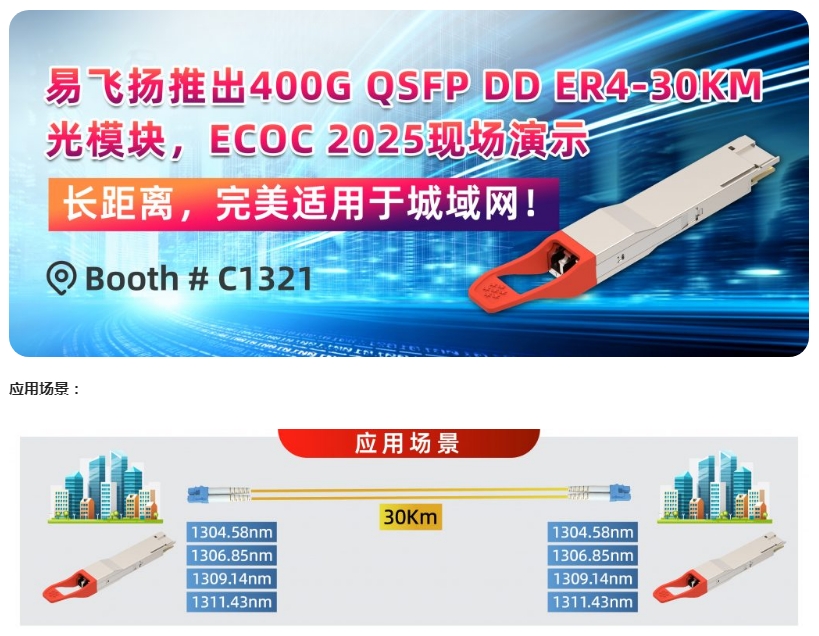 易飛揚推出400G QSFP-DD ER4-30km光模塊,ECOC 2025現(xiàn)場演示插圖2