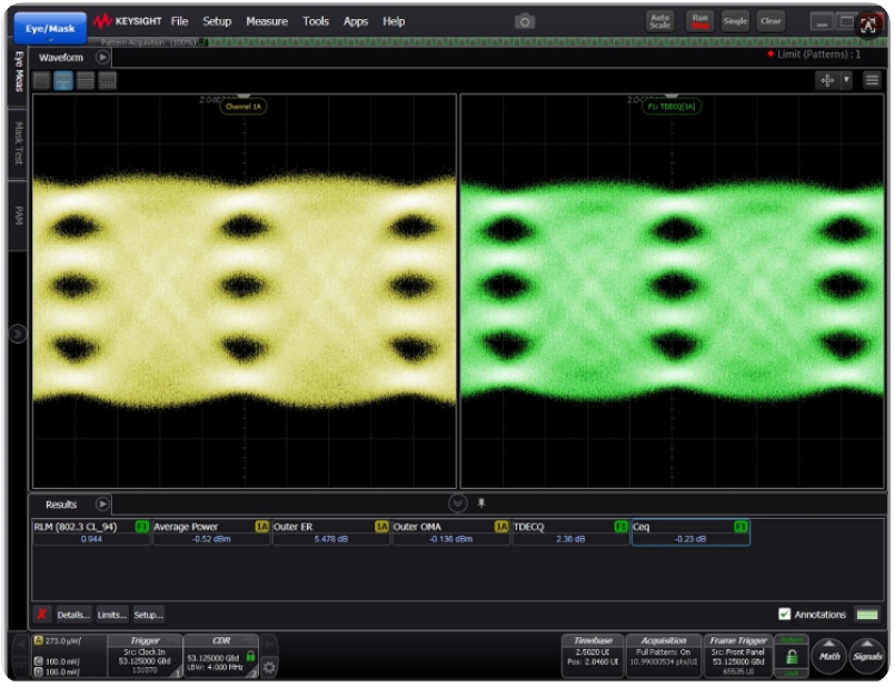 功耗與靈敏度演示:小于13W的功耗,接收靈敏度優(yōu)于-12.5dBm per lane。