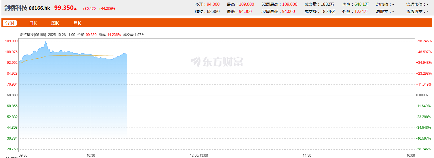ICC訊 劍橋科技(6166.HK)首掛上市,公告顯示,每股定價68.88港元,共發(fā)行6701.05萬股股份,每手50股,所得款項凈額約44.8億港元。截至發(fā)稿,漲44.24%,報99.35港元,成交額18.34億港元。