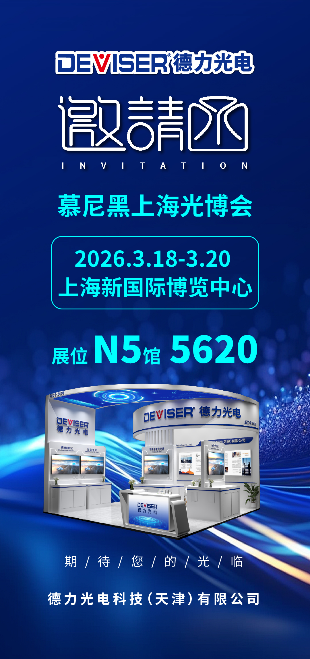 展會啟幕在即,誠邀各界朋友屆時蒞臨上海新國際博覽中心N5館5620展位展位,與德力光電面對面交流,共賞國產(chǎn)光測精品,共話光電產(chǎn)業(yè)新未來!