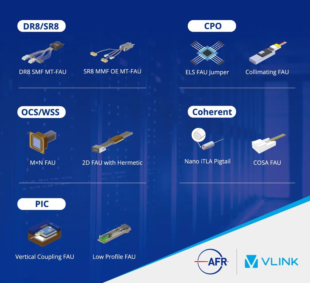 依托深厚的工藝技術(shù)積淀,光庫(kù)科技已實(shí)現(xiàn)800G, 1.6T光纖陣列的穩(wěn)定批量供貨,并在多項(xiàng)前沿技術(shù)指標(biāo)上取得重大突破,為未來(lái)更高帶寬需求奠定堅(jiān)實(shí)的基礎(chǔ)。針對(duì)行業(yè)演進(jìn)的不同應(yīng)用場(chǎng)景,公司打造了全方位的互聯(lián)矩陣:面向CPO領(lǐng)域,提供具備高耦合效率的光纖準(zhǔn)直器陣列;在OCS與WSS應(yīng)用中,推出超高精度、超高密度的2D及M×N光纖陣列;而針對(duì)相干PIC等應(yīng)用場(chǎng)景,可提供高偏振消光比且結(jié)構(gòu)緊湊的解決方案,完美契合多元化的應(yīng)用需求。